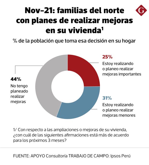 La tendencia al alza se observó desde finales del año pasado y habría continuado durante este verano. De acuerdo con una encuesta de Apoyo Consultoría de fines del año pasado, cerca del 25% de las familias del norte urbano planeaba realizar mejoras en sus viviendas en los primeros meses de este 2025, superando el 21% reportado en marzo del 2024, para los tres meses siguientes.